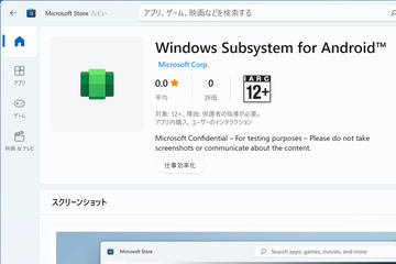 「Windows Subsystem for Android」がMicrosoft Storeに登場 ~Windows 11のAndroidアプリ実行機能?