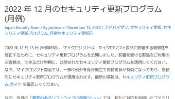 Windowsの12月度パッチ提供開始。悪用確認済み1件を含む脆弱性修正