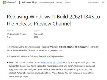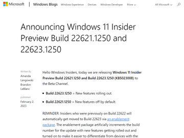 「Windows 11 Insider Preview」Build 22623.1255/22621.1255が公開