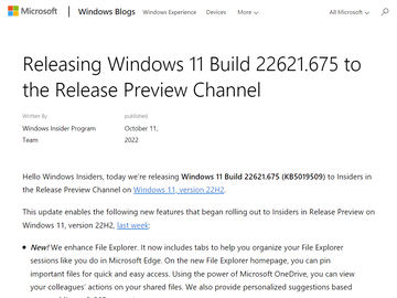 エクスプローラーのタブ機能など、Windows 11新機能が一般提供開始