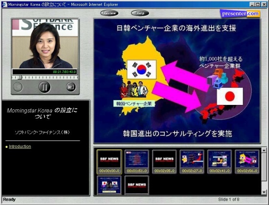 ソフトバンク(9984)の金融事業統括会社ソフトバンク・ファイナンスは、同社Webサイトでグループ各社に関連するニュースや決算発表などを、ストリーミング技術を使ってテレビニュース形式の動画で提供する「ソフトバンク・ファイナンスニュース」を28日から開始した。 配信される番組は、最新動向を3、4分間にまとめた「ヘッドラインニュース」と、決算発表や新会社設立といった「個別ニュース」で構成される。同社の社員2名がキャスターとして、日本語と英語の2ヶ国語で提供。 これまでも、同社では四半期毎の事業戦略説明会の模様などを動画配信してきたが、ナスダック・ジャパンに上場したモーニングスター(4765)をはじめ年内に数社の株式公開・上場を予定しており、今回のファイナンスニュースでIR活動を一段と強化する。 なお、動画を見るためには「Real Player Basic」が必要。