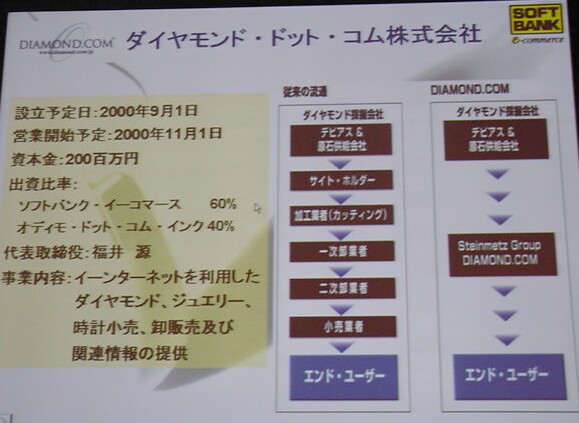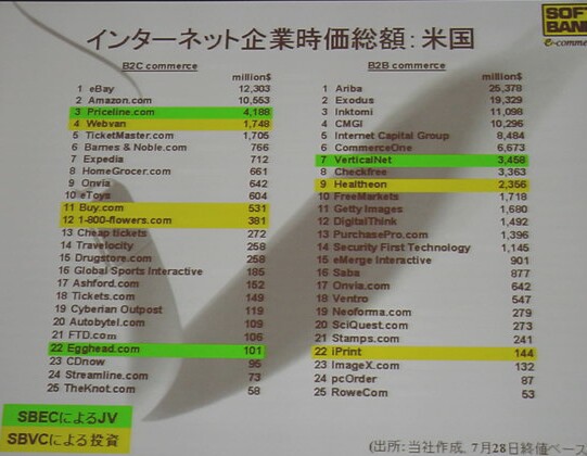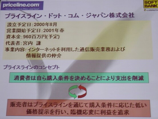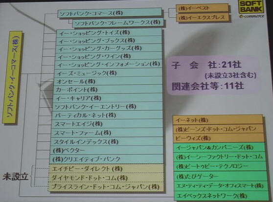 ■URL ・ソフトバンク・イーコマース http://www.softbankec.co.jp/ ・ソフトバンクが事業統括会社の株式公開を中止 http://www.watch.impress.co.jp/finance/news/2000/08/01/doc84.htm ・ソフトバンク・イーコマース、米社と逆オークションサイト開設(Internet Watch) http://www.watch.impress.co.jp/internet/www/article/2000/0731/price.htm