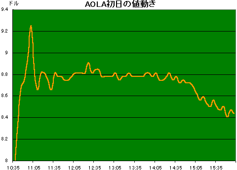 ラテンアメリカ地域でサービスを提供しているアメリカ・オンライン・ラテン・アメリカ(AOLA)が8日、NASDAQ市場に新規上場した。 1株あたりの公募価格は、当初予定価格帯の15~17ドルから8~10ドルに引き下げられ、結局下限の8ドルで決まった。初日の取引では初値が7 15/16と公募価格割れ。その後一気に9 1/4ドルの高値をつけたが、引けにかけては軟調展開で、終値は公募価格比 7/16ドル高(5.5%高)の 8 7/16ドルと小幅高。出来高は2,506万株と、この日のNASDAQ大商い4位。 公募価格が大きく引き下げられたことからもわかるように、初日の取引も人気が出ずさえなかった。単にインターネット関連の企業というだけでは人気の理由にはならないことが今回も証明した。 同社は現在、アルゼンチン、ブラジル、メキシコでアメリカ・オンライン(AOL)のサービスを提供している。今後、その他のラテンアメリカの国でも順次サービスを行っていく予定。同社は、米国AOLとラテンアメリカ(ベネズエラ)のメディア最大手Cisneros Groupの合弁企業で、持ち株(議決権のある)比率はAOLが49.7%、が47.5%。2000年3月までの9ヶ月では、収入が521万1,000ドル、純利益は5,124万4,000ドルの損失。 一方、この日新規上場した他の企業も全般にさえない中で、UPS(無停電電源装置)を半導体製造工場やISP、データセンター、病院などに提供しているアクティブ・パワー(ACPW)が、公募価格 17ドルに対し、終値が 52 3/4ドルと 35 3/4ドル(3.1倍) も上昇した。出来高は1,689万株とNASDAQ大商い9位。 人気化した背景のひとつに米国の電力事情がある。現在、米国では電力不足により電力の価格がスポットで2~3倍になっているという。電力事業が自由化されたことで競争が激化し、各社とも設備投資を積極的に行わなかった。夏の需要期に入ってそのツケがまわり、電力の安定供給に不安があるというわけだ。 また、新規上場を延期する企業が相次いでいるものの、それでも上場予定企業は多い。そのなかで「利益の黒字化がはっきりしていない企業には投資したくない」とする投資家が台頭している。ACPWも1999年12月期の純利益が740万ドルの損失となっているが、2002年度には黒字化する見通しがある。