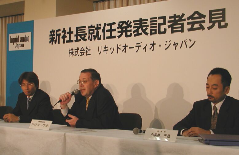 アブラモフ氏は「21世紀の職場として選んだのは、インターネットと音楽という2つの成長産業のシナジーに無限の可能性を感じたため」と挨拶。今後の経営方針としては「株主の視線での経営を心がけていく」とし、事業戦略には「新譜のみならずニーズも高い旧譜の活性化にも力を入れアダルト市場を育成していく。さらに今後はコンテンツと使いやすさに重点を置く」と力を込めた。 また「協力体制が不可欠な米国Liquid Audioとの関係をより親密にしていくことも進めるが、当面取り組まなければならないことは音楽産業の一企業としての位置付けを明確にしていくこと」と語った。「決して既存のパッケージビジネスと競合するわけではなく、音楽業界全体をさらに発展させていくビジネスモデルだということを強調していきたい」という。反社会的勢力と関わりがあると報じられるなど会社にネガティブなイメージを持つ向きが多い点については「一生懸命に仕事をしていく」と述べるにとどまった。 一方、退社することが決まった大神田正文氏は、マザーズ上場第1号として上場後の値動きなどを振り返り「技術を評価する向きも多かったが、筆頭株主(スーパーステージ)が未公開企業だったことによる社会的信用の低さや若い役員が多かったことを嫌気された面があったかも」とコメント。今後は「いくつか誘いの話はあるが、どうするかは何も決めていない」とした。リキッドとは、40株を保有する株主としての関係のみとなる。 ■URL・リキッドオーディオ・ジャパン http://www.liquidaudio.co.jp/ ・リキッドオーディオが突然の社長交代 http://www.watch.impress.co.jp/finance/news/2000/09/08/doc373.htm