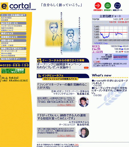・ekitan C57 Money Boutique (マネー・ブティック) http://www.ekitan.com/c57/e-cortal/money/ ・駅前探険倶楽部 http://ekitan.com/ ・イー・コータル証券 http://www.ecortal.co.jp/ ・イー・コータル証券が11月に営業開始~欧州系初のオンライン証券 http://www.watch.impress.co.jp/finance/news/2000/10/19/doc751.htm