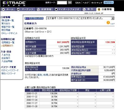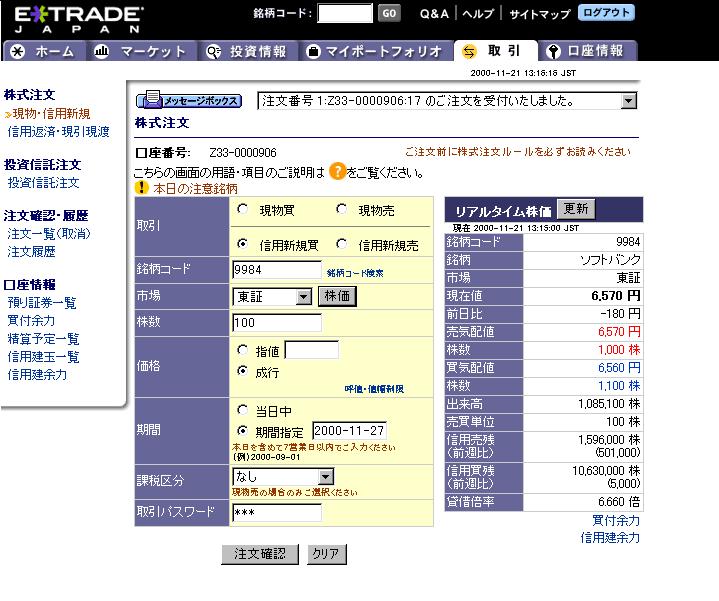イー・トレード(8627)の子会社イー・トレード証券は24日、インターネットによる信用取引サービスを11月27日から開始すると発表した。コールセンターを通じた信用取引の注文はこれまでコールセンターを通じて行ってきたが、そこで蓄積したノウハウを活かした同取引のシステムが完成し開始する運びとなった。