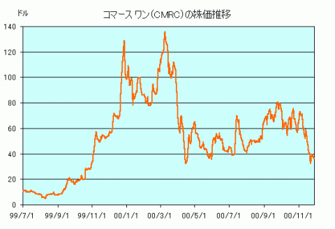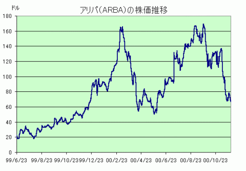 市場平均のコンセンサス予想のEPS(1株あたり利益)は、ARBAが2000年9月期の実績84セントの損失に対し2001年9月期が14セント(最も高い予想24セント~最も低い予想14セントの損失)、2002年9月期が47セント(同55セント~20セント)。一方、CMRCは1999年12月期の実績2.62ドルの損失に対し2000年12月期が36セントの損失(同32セントの損失~43セントの損失)、2001年12月期がブレークイーブン(同10セントの黒字~19セントの損失)。