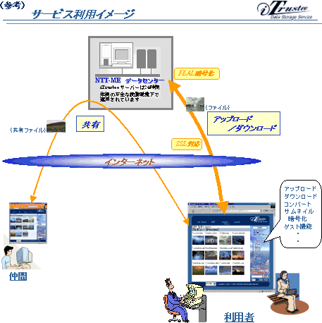 「iTrustee」のネーミングがついた同事業は、一般的なWebブラウザを通してデータファイルを気軽にアップロードしたりダウンロードできるほか、通信とファイルそのものを暗号化するため高いセキュリティーレベルをもつ、という。テラバイトクラスの大容量にも対応し、アップロードしてある画像ファイルをBMPからJPEGやPNGなどへ保存形式を簡単に変換することも可能だ。