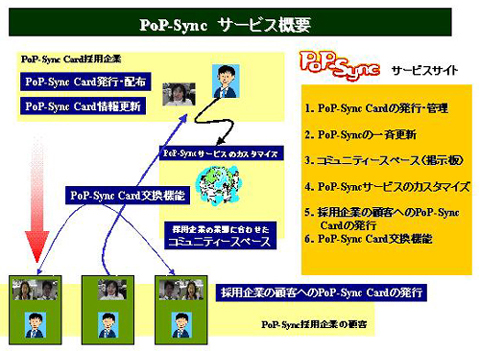 ソニー(6758)は5日、マルチプラットフォーム対応のコミュニケーションサービス事業「PoP-Sync(ポップシンク)」をスタートさせた。ポップシンクカードと呼ぶ独自の入出力フォーマットに情報を入れれば、自社のユーザーなどに同時一斉で配信できるなど、いち早く、しかも継続的な情報の伝達が可能になる。当初はウィンドウズによるアプリケーションサービスとして始めるが、携帯情報端末や携帯電話など利用範囲を順次拡大していく計画だ。