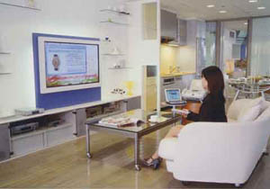 松下電器産業(6752)は11日、デジタルネットワーク化された住宅やモバイル(自動車、携帯電話など)を提案する「eHIIハウス」を東京都品川区の同社マルチメディアセンター内に開設し、同日報道関係者に公開した。同社は1999年1月にHII(ホーム・インフォメーション・インフラストラクチャー)ハウスを同センターに設置していたが、最新のブロードバンドやデジタルTV、インターネット対応携帯などを盛り込み「eHII」として発展させた。