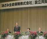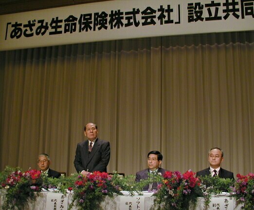 大和生命保険とソフトバンク・ファイナンス(SBF)は23日、相互会社ではなく株式会社形態の新生命保険会社「あざみ生命保険株式会社」を20日付で共同設立するとともに、昨年8月に業務の一部停止命令を受け経営破綻した大正生命の保険契約を新会社が包括的に引き受けることで保険管理人と合意したと発表した。