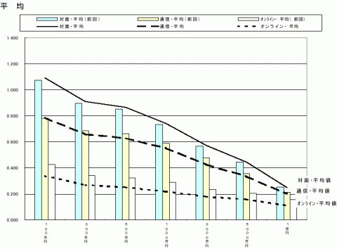 手数料率の平均を前回調査時の水準と比べると、対面取引はほぼ同水準で、通信取引は9割程度、オンライン取引は8割程度の水準になっている。