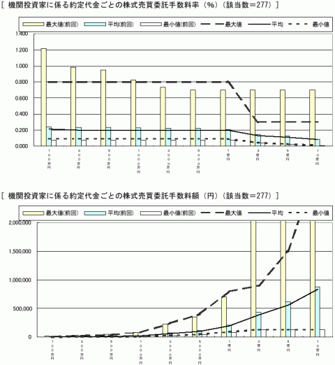 一方、機関投資家に対する調査では取引頻度の高い2社の証券会社から提示されている手数料設定方式、手数料率・手数料額についてアンケートを実施した。