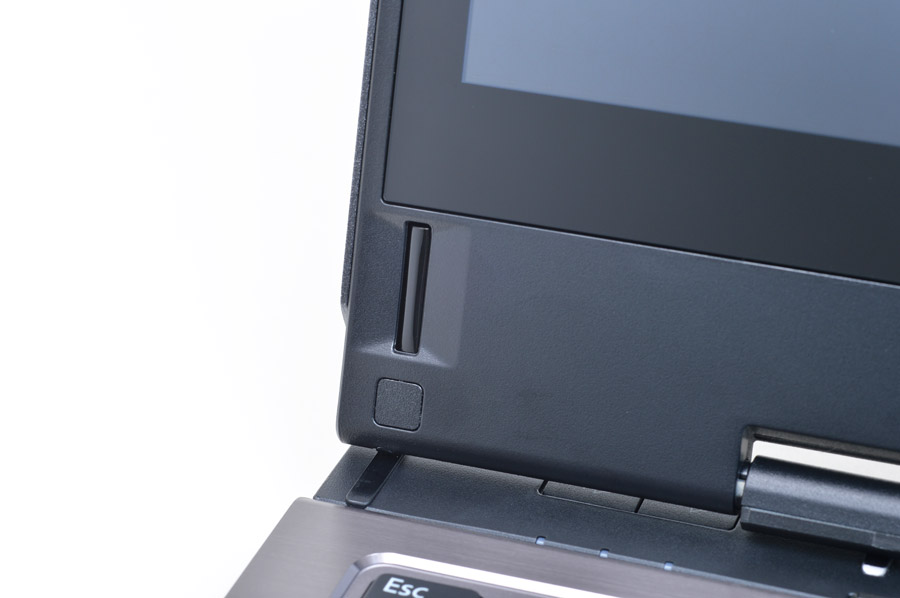 また、液晶の左下には指紋センサーが搭載されており、指紋認識でログオンなどを行えるので、プライバシーを重視する用途にも最適だ(※OS標準の指紋認証は利用できない)。