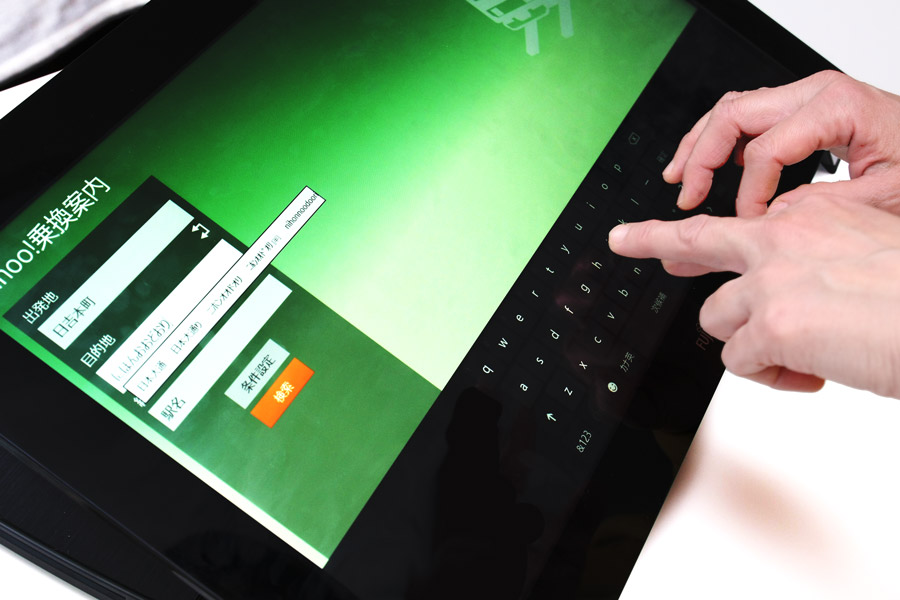 たとえば子どもと一緒に出かける際の目的地までの交通機関を調べようとするときだ。WH77/Mならサッとスリープから復帰させて、タイル状のスタートメニュー画面から経路検索アプリをタッチするだけでいい。駅名などを入力する際も画面に表示されるキーボードや音声入力が使えるので、キーボードやマウスを引っ張りだしてくる必要もない。またスマートフォンやタブレットと違い画面が大きいので、2人で一緒に画面を見ながら操作したり、検索結果をプリンターで簡単に印刷できるのもWindowsならではだ。