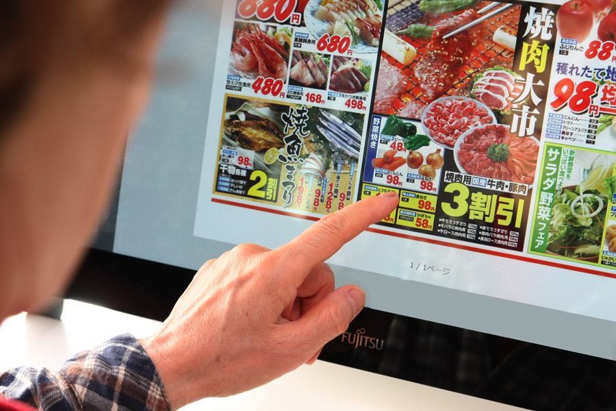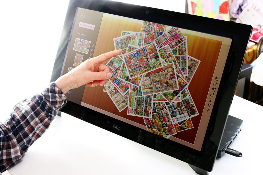 リビングの代表的な住人といえばお母さん。WH77/Mはタッチ操作により、PCに慣れていないお母さんでもカンタンに慣れ親しむことでができる。特に喜んでもらえるのが、電子チラシアプリだ。