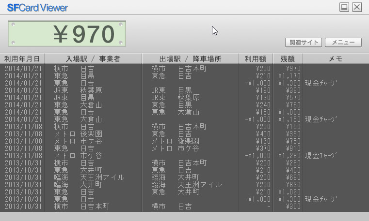 駅の券売機や改札機にカードをかざさなくても、NFCにかざすだけで残高や利用履歴の照会ができる。出かける前にチェックしておけば、自動改札に通せんぼされて恥をかかずに済む
