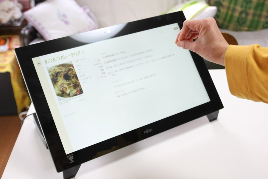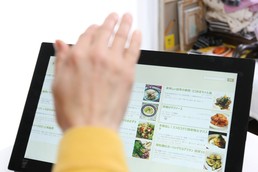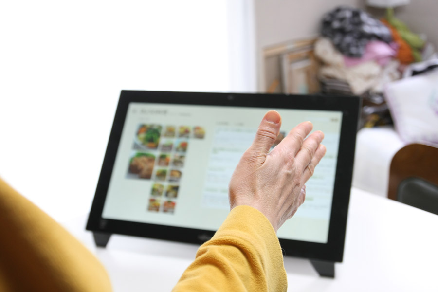 また、最近はタブレットやスマートフォンで料理レシピを参照する時代。ただ、料理中にレシピを確認したい場合、手が水で濡れていたり食材が付いていたりして、タッチパネルをさわりづらいことが多々ある。