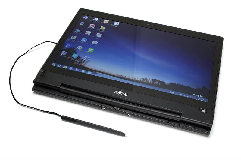 ので、ノートPCとして「LIFEBOOK TH90/P」を使っていて、必要とあらば画面をパタンと相手側に倒すなどして、相手に見せることができる。もちろんこの状態で、皆で画面を見るような使い方もできる。