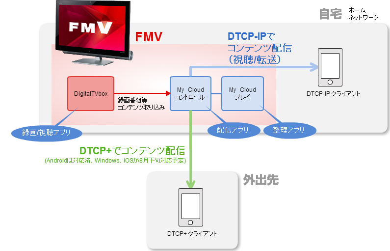 7月現在では「My Cloud プレイ for Android(有料版)」のみとなるが、DTCP+による宅外再生にも対応している。これは、宅内再生と同じように自動または手動でFH78/RD上で“取り込み”しておくだけで、外出先のモバイルネットワークなどを経由して自宅のFH78/RD上の録画番組にアクセス可能になるというもの。持ち出し視聴で必要な端末へのコピーの手間がなくなるため、より気軽に録画番組を視聴できるようになるだろう。テレビ周辺機能のさらなる充実に、期待は高まる。