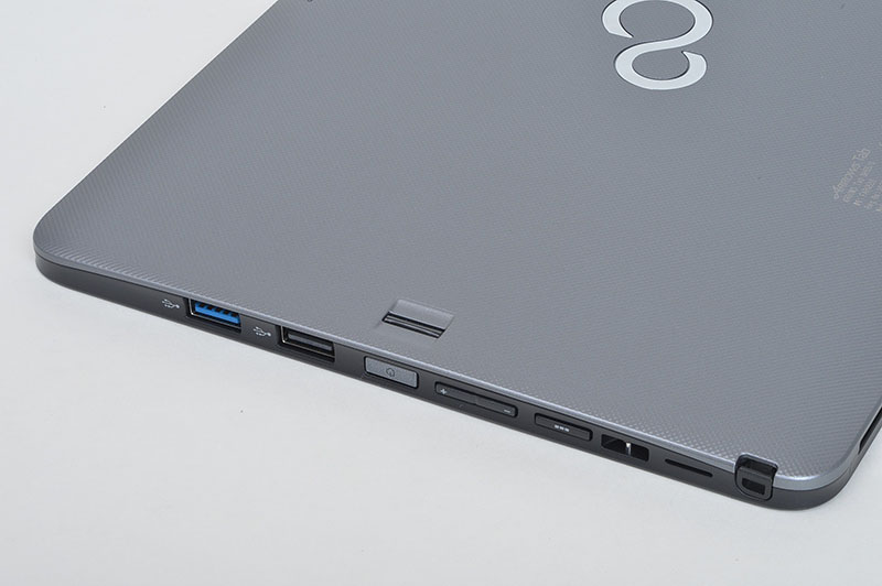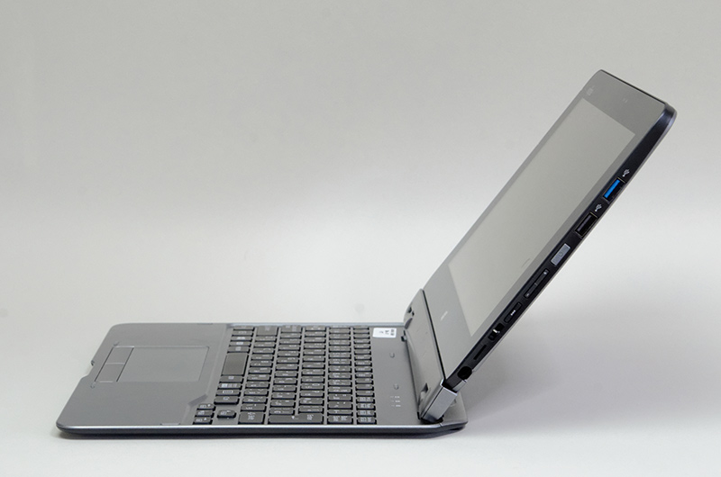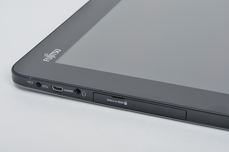 メインメモリが4GB、ストレージが店頭モデルで約64GB フラッシュメモリ、microSDカードスロットとUSB 3.0ポート、USB 2.0ポートを1つずつ備えるのも同じ。ディスプレイはマルチタッチ対応パネルを搭載した10.1型のフルフラットファインパネルIPS Alpha液晶なのも共通だが、解像度は1920×1200ドットと、この部分だけ残念ながらスペックダウンしている。