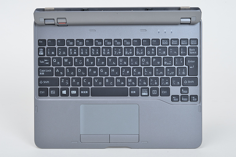ハードウェア面で一番のポイントとなるのは、キーボードが標準装備されたこと。テンキーの省かれたタイプだが、キーピッチは標準的なノートPCと同等。手前にタッチパッドと広いパームレストが設けられ、奥行もしっかりあるので、キー入力もカーソル操作も両方そつなくこなせる。