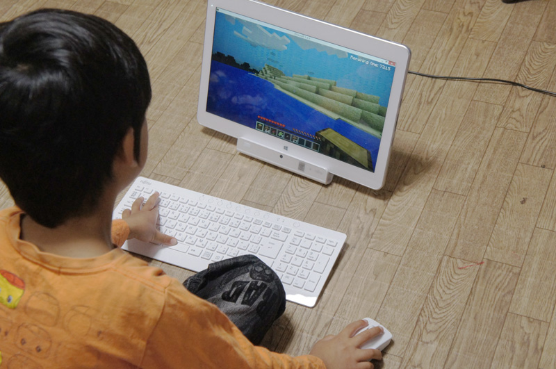 また、最近小学生の間で流行っているゲームといえば、なんといっても「マインクラフト」だ。筆者宅でも、娘や息子の友達が遊びに来て、PlayStation 3でマインクラフトの4人同時プレイしているのをよく見掛ける。GH77/Tで、息子にPC版のマインクラフトをやらせてみたところすぐに操作に慣れて、サクサクと遊んでいた。PlayStation 3のコントローラーで遊ぶよりも、慣れたらマウスとキーボードのほうが早くて楽なようだ。