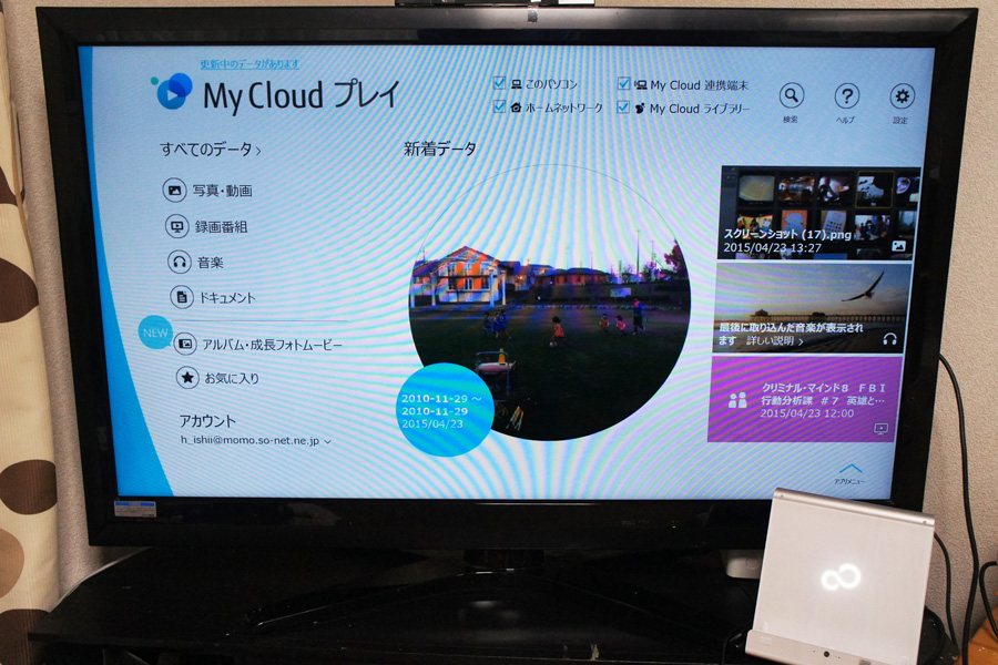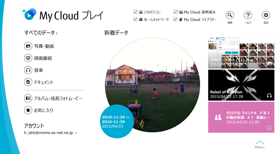 「My Cloudアプリ」のひとつである「My Cloudプレイ」は、写真や動画、音楽を一元管理するためのアプリであり、撮った写真や動画を家族みんなで楽しむためのさまざまな機能を備えている。