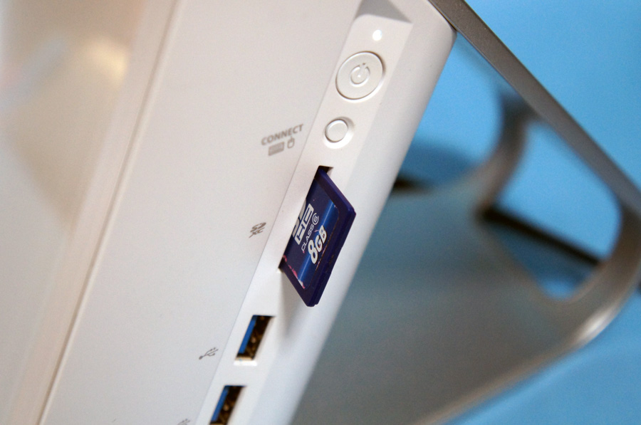GH77/Tのウリのひとつが、コンパクトなスタンド部分に約1TB HDDを2台搭載し、合計約2TBの大容量ストレージを備えていることだ。そのため、写真や動画、音楽といったファイルサイズの大きなデータも余裕で保存できる。最近は、家族一人一人がスマートフォンやデジカメを持つ時代になり、気軽に写真や動画を撮影できるようになったが、その反面、撮影した写真や動画がいろんな機器に分散してしまい、管理しきれなくなったという経験をお持ちの方も多いことだろう。大容量ストレージを搭載したGH77/Tは、そうした悩みをお持ちの方にも最適だ。