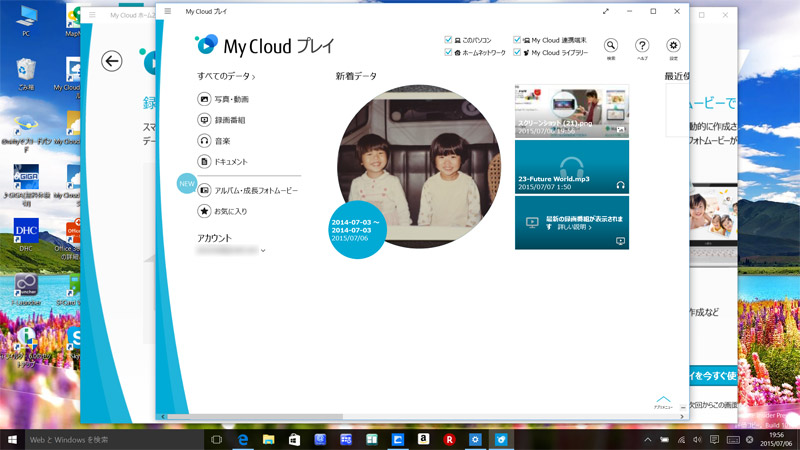 ただ1点異なっているのは、「My Cloud プレイ」をはじめとするMy Cloud系のアプリはWindowsストアアプリであるにも関わらず、標準ではフルスクリーン表示ではなくウィンドウ表示になること。ウィンドウ表示だと複数のMy Cloud系アプリや他のアプリを切り替えやすくなるほか、ウィンドウのリサイズも可能なので、使いやすくなったと感じるユーザーも多いのではないだろうか。