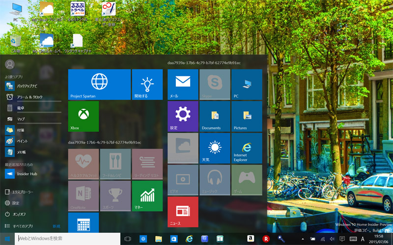 Windows 8/8.1との見た目上の最も大きな違いは、スタートメニューが復活したことだろう。Windows 7に到るまで連綿と受け継がれてきたスタートメニューだが、Windows 8では廃止され、代わってパネル状のアイコン「ライブタイル」などが並ぶスタート画面「Modern UI」が採用された。しかし、従来型のデスクトップとスタートメニューに慣れ親しんでいたユーザーからあまりいい評価が得られなかったこともあり、Windows 10ではスタートメニューを復活させ、その中にライブタイルを統合する形で改良している。