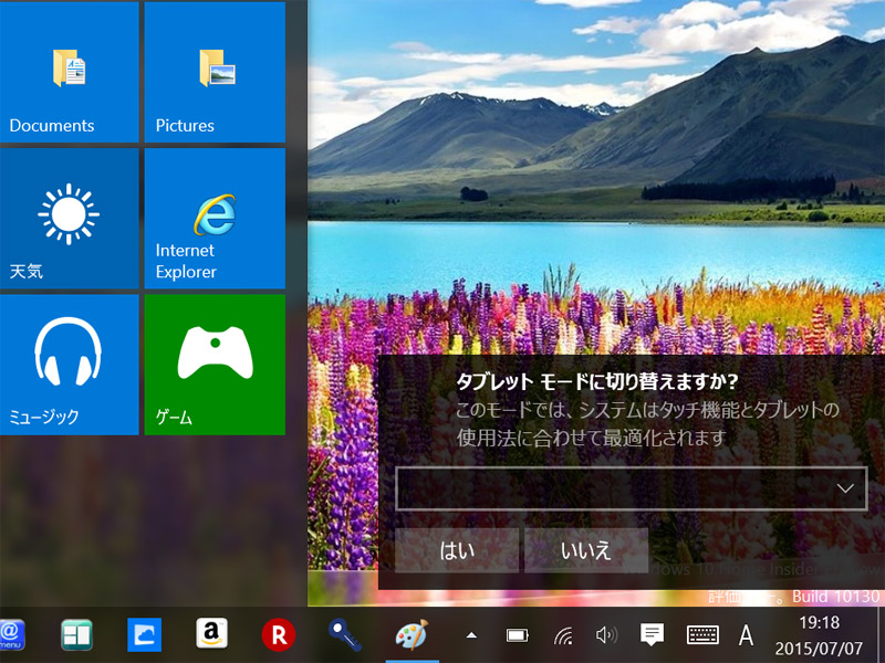 ただし、スタート画面が完全に廃止されたわけではない。タッチ操作が主体になるタブレット端末で便利に使えるよう、Windows 8/8.1までのスタート画面とほぼ同じような操作性を実現する「タブレットモード」も用意されている。