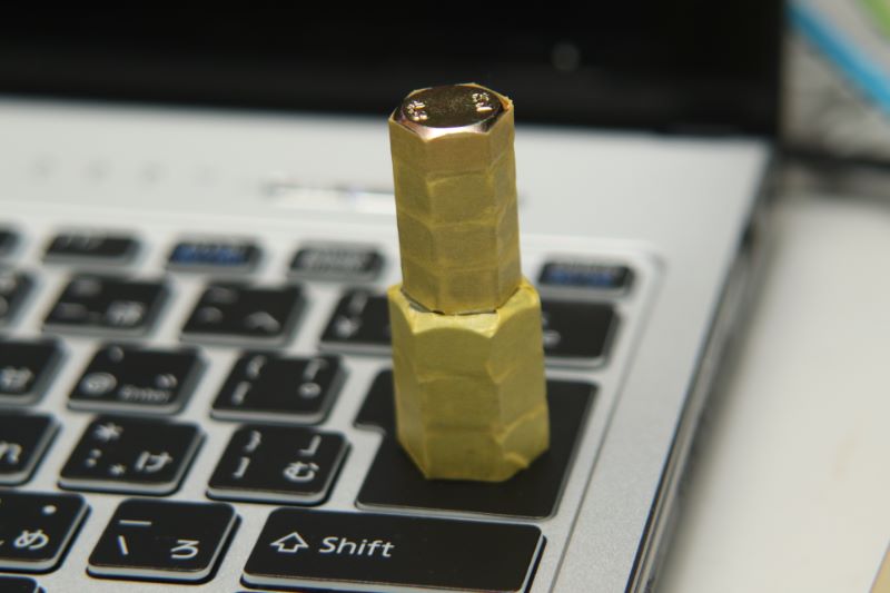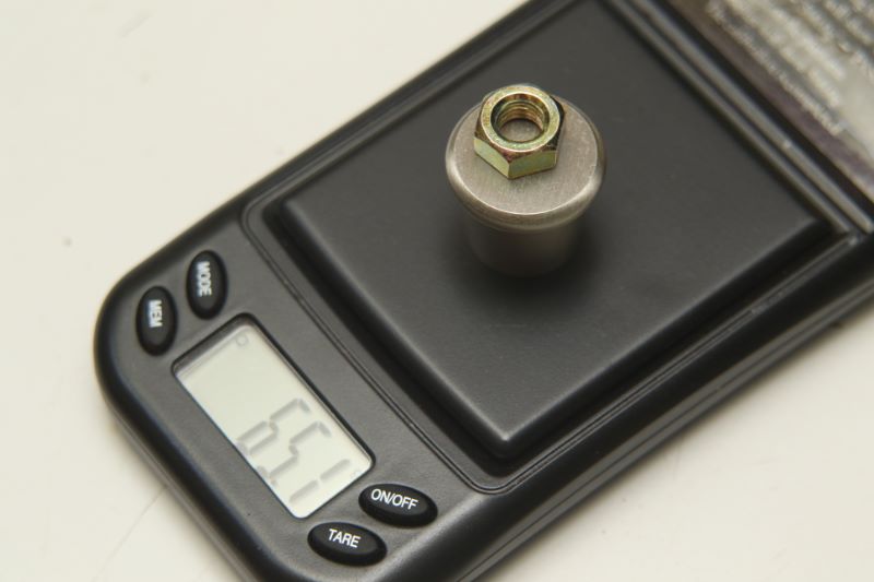 次がその証拠写真(我が家にあるもので、荷重を測るっていったらボルトなのである)。独自に試してみたところ、文字キーはデスクトップ用のキーボードより少し軽めの65グラムでキーインできた。でもEnterキーと右側のShiftキーはだいたい52グラム。そのほかのキーも調べてみると左側のTab,CapsLock,Shift,Ctrlと中央のスペースが軽い52グラムとなっていた。