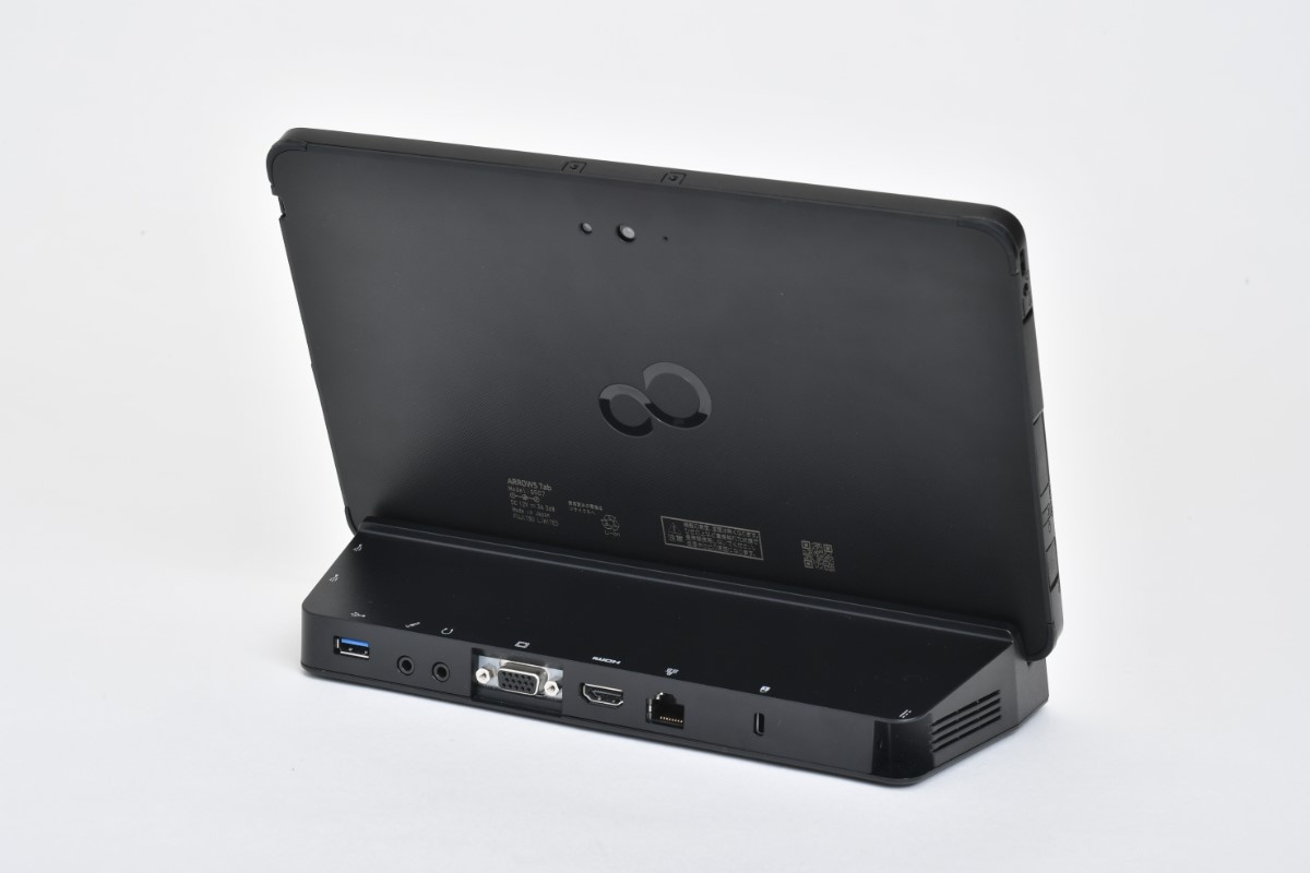 そのほかオプションとして、LANポートやHDMIやDisplayPortなどを備えた拡張クレードルが用意されている。拡張クレードルに本体を挿し、その状態でカバー付キーボードを開いてノートPCのように使用できるほか、液晶ディスプレイなどにつなげて別途マウスとキーボードを用意すれば、デスクトップPCのように使うこともできる。性能的にもデスクトップPC代わりとして不自由なく使用できるレベルだ。