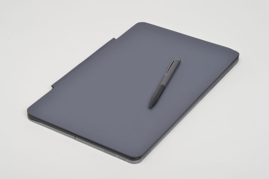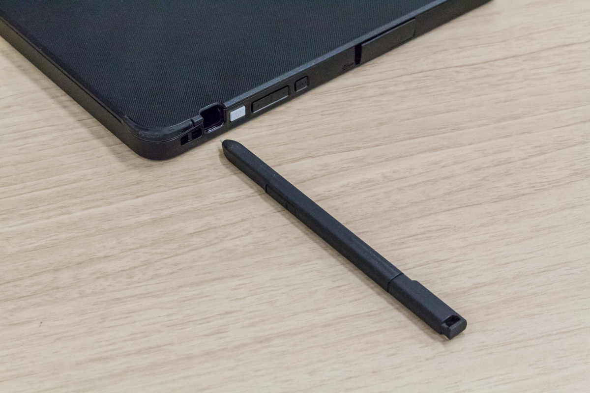 ペン入力には、Wacomの電磁誘導方式デジタイザを使用しており、2048階調の入力検知に対応している。ペンの書き味を紙に鉛筆で書くときの感触に限りなく近付けるために、画面には特殊加工のシートが貼られていて、そのおかげでタブレットではトップレベルの自然なペン入力が可能となっている。また、ペンは本体に収納できるので紛失する心配がなく、いつでもすぐに入力を行える。とにかくペンの利用が快適なタブレットだ。