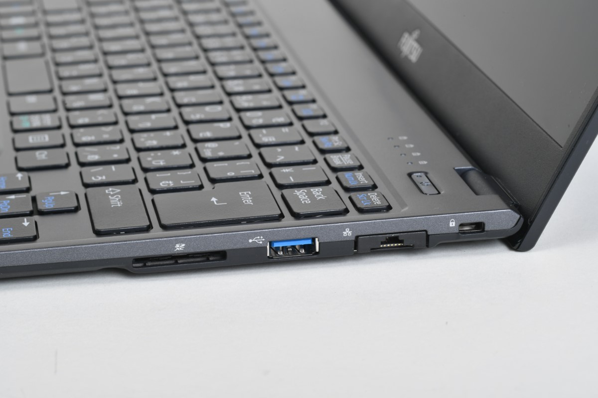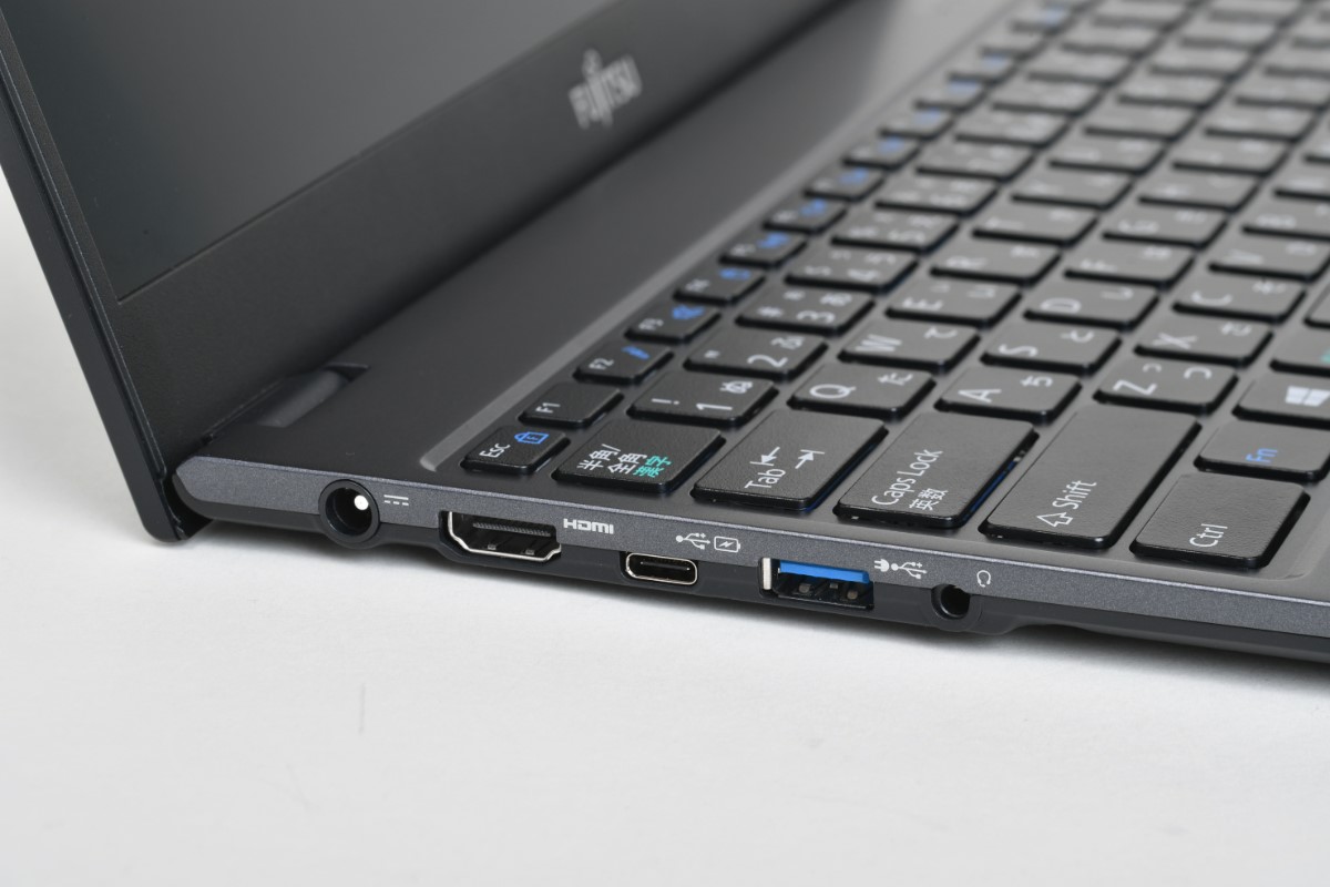 そのほか、最新のUSB 3.1 Type-Cポート(Gen1)を1ポート搭載していることも特長である。このポートはUSB Power Deliveryに対応しており、20V/3Aの給電を行えるモバイルバッテリを使えば本体の充電を行える(※)。LIFEBOOK UHシリーズはバッテリ内蔵タイプのノートPCだが、このポートがあるおかげで、モバイルバッテリを用意するだけでスマートフォンのように駆動時間を延ばすことができる。(※)全ての機器での動作を保証するものではありません