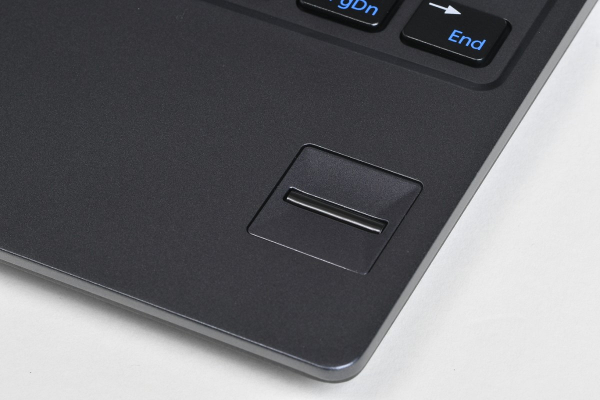 キーボードの右下部分には指をスライドして認識させるタイプの指紋センサーを搭載しており、Windowsのサインインなどを指紋認証で行えるWindows Helloを使える