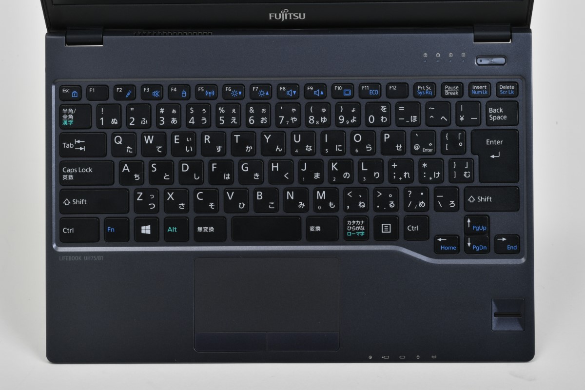 UHとSHのキーボードはサイズ、打鍵感などほぼ同等。指紋センサーを搭載している点もUHと同様。ただ、UHシリーズはキーボード上部などがコンパクト化している