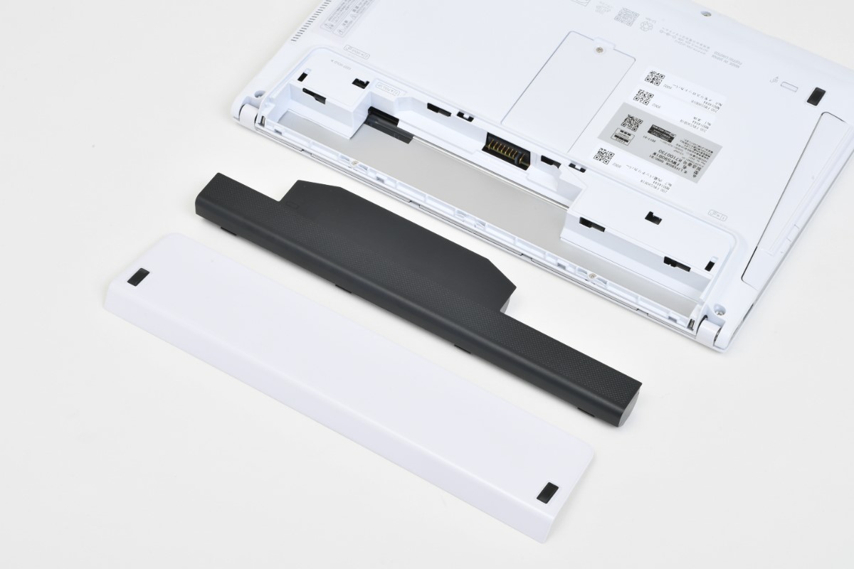 光学ドライブは簡単に取り外すことができ、取り外した後には「モバイル・マルチベイ」という拡張ベイが現れる。モバイル・マルチベイには、光学ドライブの代わりに付属のカバーを取り付けることができ、そうすることで本体の重さを約100g軽量化することが可能だ。また、別売りの「増設用内蔵バッテリユニット」を挿し込めば、バッテリ駆動時間を約6.1時間も延ばすことができたり、「増設用内蔵ハードディスクユニット」を挿し込めば、約500GBの内蔵HDDの増設が簡単に可能だ。