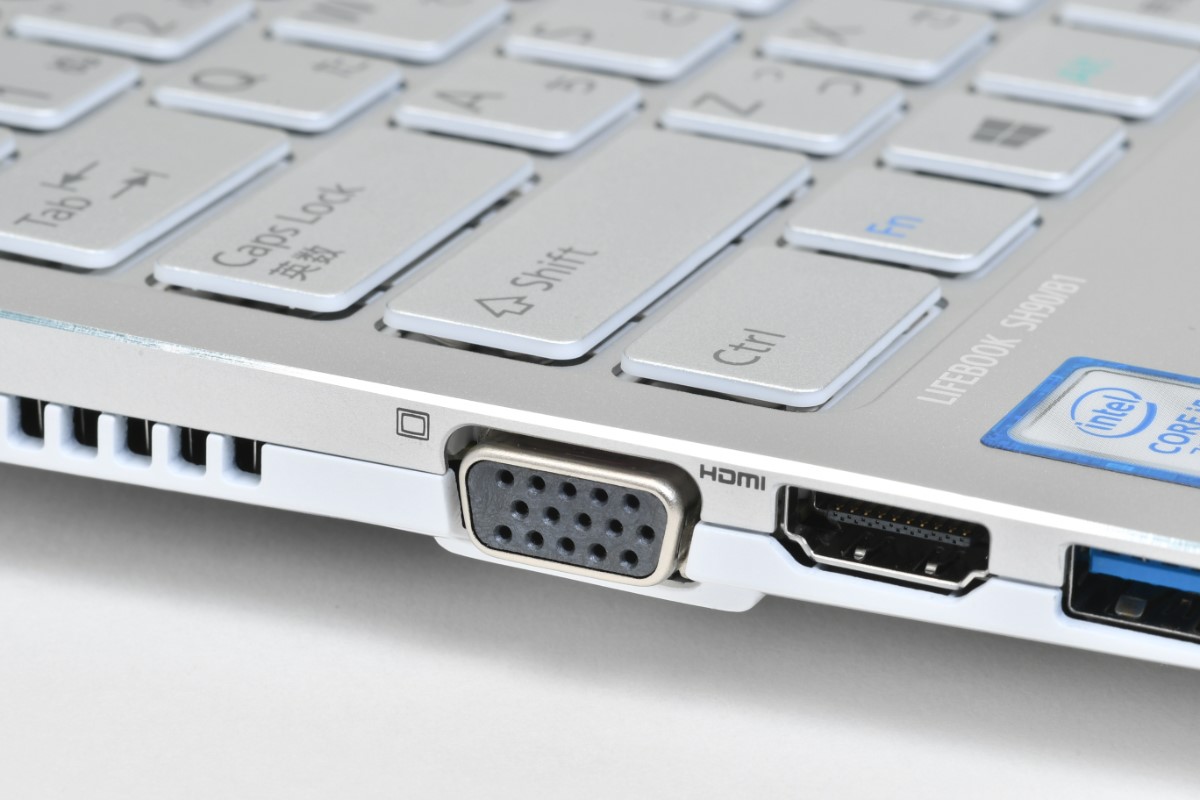 SHにあってUHにないものとして、アナログRGB出力端子(ミニD-SUB15ピン)の端子が挙げられる。少々古めのプロジェクターなどに接続する際は必要だったりするので、ビジネス用途ならなにかと重宝する