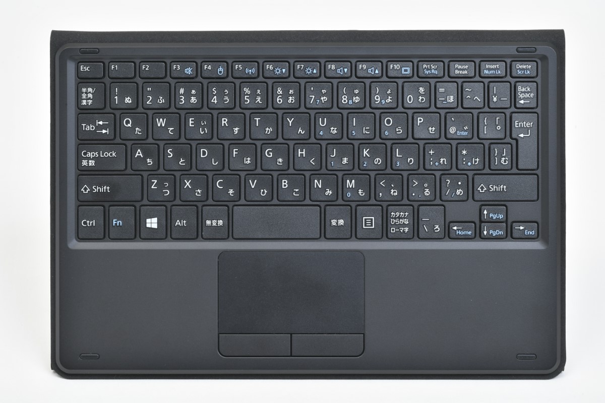 キーボードはキーピッチ約19mmのフルサイズを実現しており、しかも約1.5mmの大変深いキーストロークを確保しているので、このタイプのキーボードとしては大変使いやすい。2 in 1に見られがちな中途半端な部分は一切なく、ノートPCと変わらない使い勝手を実現できている。
