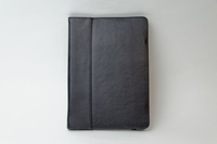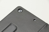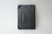 「Maroo」のiPadケースは、iPad 2から最新のiPad Air、iPad miniまで対応する幅広いラインナップが魅力の製品だ。iPad Air用のラインナップは【プレミアムレザーシリーズ(4色)】と【プレミアムレザーシリーズ スリム(ブラックのみ)】の2種類があり、プレミアムレザーシリーズとスリムでは厚さが異なる。外側には高級感ある本革素材が用いられ、開いた内側はソフトなタッチのスエード地となっている。ケース自体の厚さはあまりなく、ハードシェルというわけでもないので、力を入れればしなる程度の堅さ。重量も300g以下と、iPadに装着した状態で重さが気になることはほとんどない。