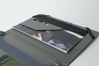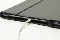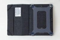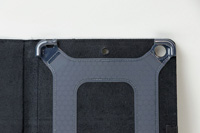 内側の左にはちょっとした書類を挟めるポケットとゴムバンドがあり、モデルによっては名刺などのカードを入れておける窓付きのポケットも付いている。右端にはスタイラスペンを固定しておけるホルダーも備えていて、実用性もかなり高い。当然ながら、ボタン操作を妨げるような部分はなく、充電も装着したまま行える。マイクやカメラレンズの部分はきちんとホールが設けられているので、ケースを装着した状態で写真や動画を撮影するのも全く問題ない。
