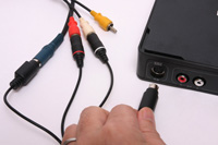 デッキからの映像信号は、ピンプラグ(RCA)のコンポジット信号(Y/C混合)または、Y/C分離のS端子で入力できる。高画質でデジタル化するならS端子で入力するといいだろう。オーディオ信号はラインレベルのピンプラグで入力する。D端子をはじめとしたコンポーネント信号は入力できない。