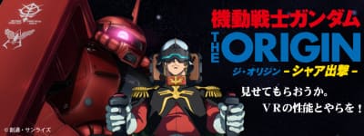 今回展開されるVR映像体験は、『機動戦士ガンダム THE ORIGIN 激突 ルウム会戦』の戦闘シーンを、モビルスーツに搭乗するシャアの視点から楽しめるもの。ルウム戦に向けて出撃準備中のシャアの視点からはじまり、コクピットビュー、そしてパプアから戦場へと飛び立ち、地球連邦軍の主力艦隊に立ち向かう激しい戦闘の中で活躍する、迫力のあるシーンを体験できる内容になっている、とのことです。