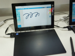 ほかにも、レノボジャパンのブースでは2in1タブレット「YOGA BOOK with Windows」とクラウド型の協働学習支援ツール「schoolTakt」を用いたアクティブ・ラーニングを紹介した。YOGABOOKはスクリーン上で手書き入力ができるほか、プリントやノートにも付属のリアルペンで書き込めば、書いた文字がスクリーン上に表示される。学習者は紙に書く感覚で、デジタル編集の良さが活かせるため、より表現豊かなアクティブ・ラーニングへ広げることも可能だ。