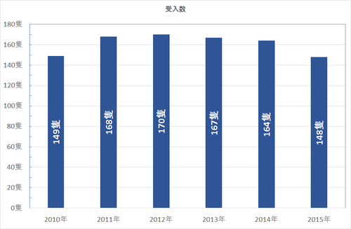 ここ数年の富津の受け入れ隻数の推移は次の通り。