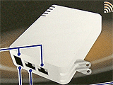 イーモバイルのデータ通信アダプタ「D01HW/D02HW」を接続することで、無線ルータ化できるという小型アクセスポイント。データ通信アダプタ経由で無線LAN接続できるというもので、その際の無線LANの規格はIEEE 802.11b/g。 | |