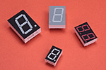 いろいろな7セグメントLEDディスプレイ。各セグメント内にそれぞれLEDが埋め込まれている。光らせるLEDを変えることで数字などを表示できる部品だ。 |