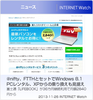 @nifty、FTTHとセットでWindows 8.1 PCレンタル、XPからの乗り換えも見据え -INTERNET Watch